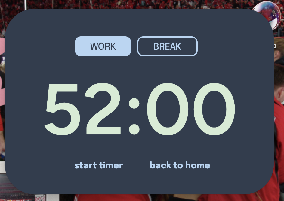 The Pomodoro Widget is a minimalist, desktop timer built as an Electron app with React and Vite. Inspired by the Pomodoro technique, it helps users manage focused work sessions and breaks with a distraction-free floating widget. Designed to stay on top, blend into the desktop, and look aesthetically cohesive, the widget is lightweight and fully cross-platform.